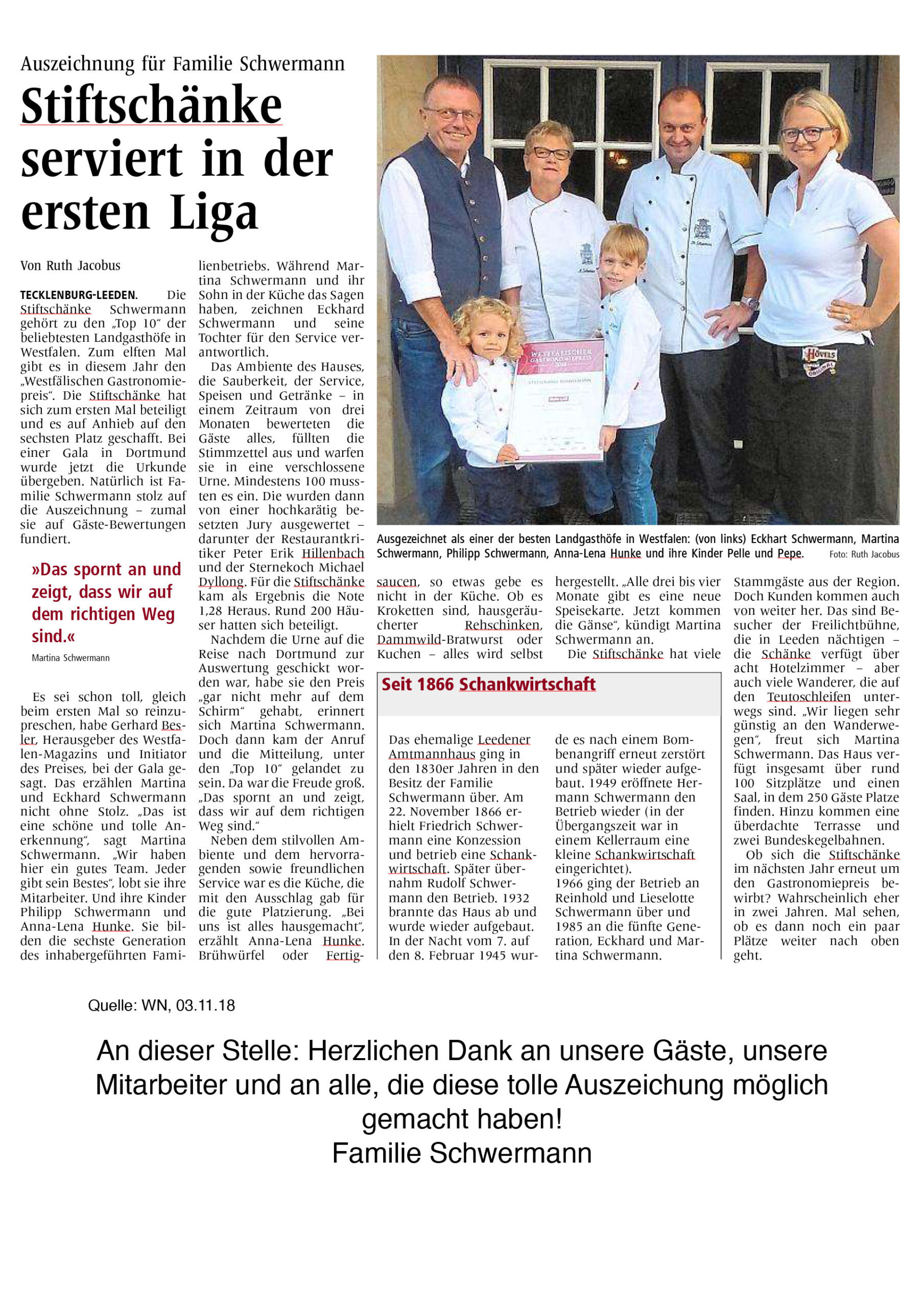 Ausgezeichnet als einer der besten Landgasthöfe in Westfalen! Lesen Sie hier den kompletten Zeitungsartikel: