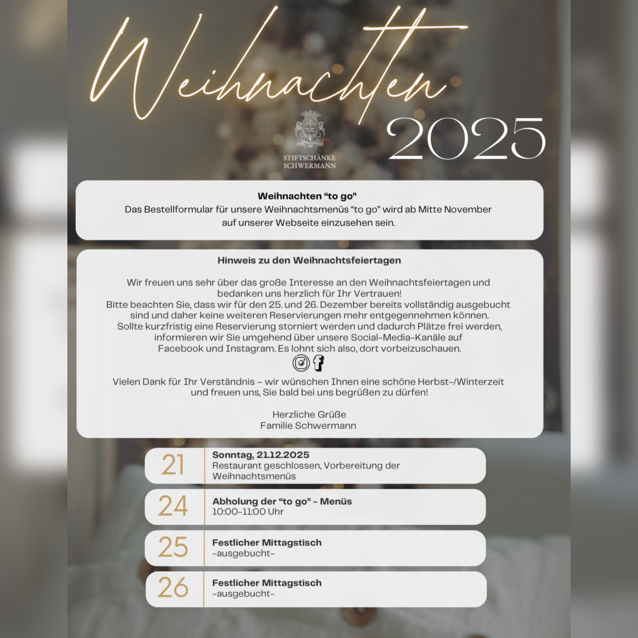 1966 verstab Hermann Schwermann und das Geschäft ging an Reinold Schwermann und seine Frau Lieselotte über. Die Stiftschänke präsentierte sich als ein modernes Lokal mit gutem aus Keller und Küche. Zwei Bundeskegelbahnen und Räumlichkeiten für Familenfestlichkeiten werden den Gästen geboten. Im Jahre 1985 übergab Reinold Schwermann das Lokal an seinen Sohn Eckhard Schwermann und seine Frau Martina, die das Restaurant mit Hotel bis heute in fünfter Generation betreiben. Währen dieser Zeit wurde das Haus immer wieder renoviert und ausgebaut. Hotelzimmer kamen dazu, der Saal wurde erneuert, die Terrasse bakam eine Überdachung. Die sechste Generation, mit Phlipp Schwermann, als Hotelfachmann und Koch, arbeitet bereits daran in die Fußstapfen treten zu können. Heute steht die Stiftschänke Schwermann als modernes und eines der immer weniger werdenden Tradionshäuser kulinarich sehr gut dar. Die Gäste schätzen unsere hausgemachten Spezialitäten und die familiär herzliche Atmosphäre. Die Schwermann sind Gastgeber in bald sechster Generation.